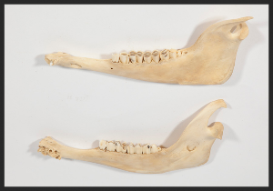 I'll admit I wondered the same thing myself, so I checked with the Illinois Department of Natural Resoures (because I live in Illinois and sell at shows in Illinois) and the Wisconsin Department of Natural Resources (because I occassionally sell in Wisconsin). Both regulate the sale of wild animal parts in their state, and both said that because the skull is from a domestic sheep that was raised on my farm it is legal for me to sell this skull. I would be happy to pass along the e-mail responses I got from both DNRs to anyone who is interested.